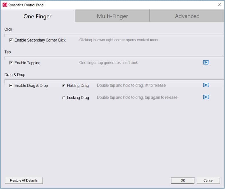 Advanced Touchpad Functionality Not Working