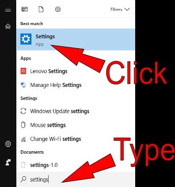 - Hit the windows key and type “settings”, and then select the top result:
