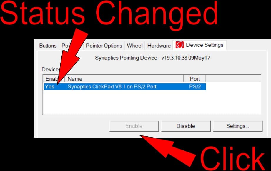 If your device is disabled, click on Enable to activate your trackpad.