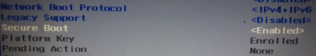 - Verify that Secure Boot is switched to ON. If it is Off, the computer bios settings must be changed at start-up. Continue to the next step for how to configure the computer bios.