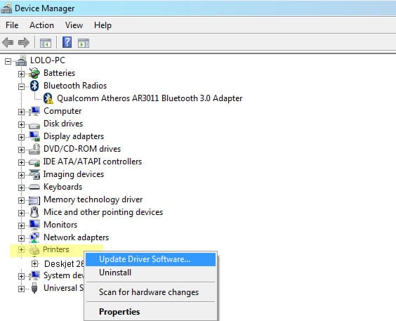 Right-click your printer’s name and choose Update Driver from the context menu that will appear. Pick the option Search automatically for updated driver software.