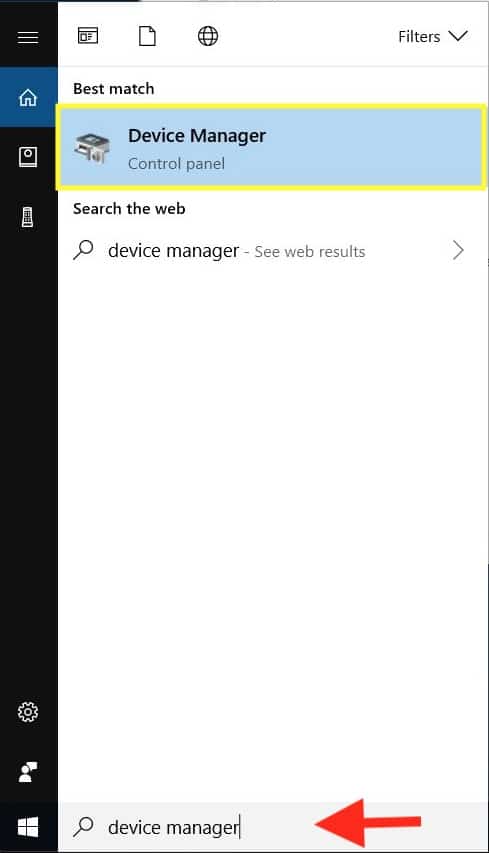 Then, using the taskbar’s search box, type in Device Manager and click on the app.
