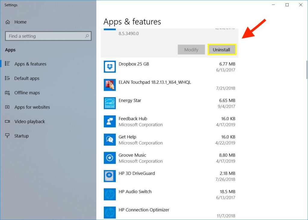 Once that’s completed, you can go into the Device Manager (by searching the same way) and determine if the video adapter’s driver is still installed. If so, right-click on it and choose Uninstall device.