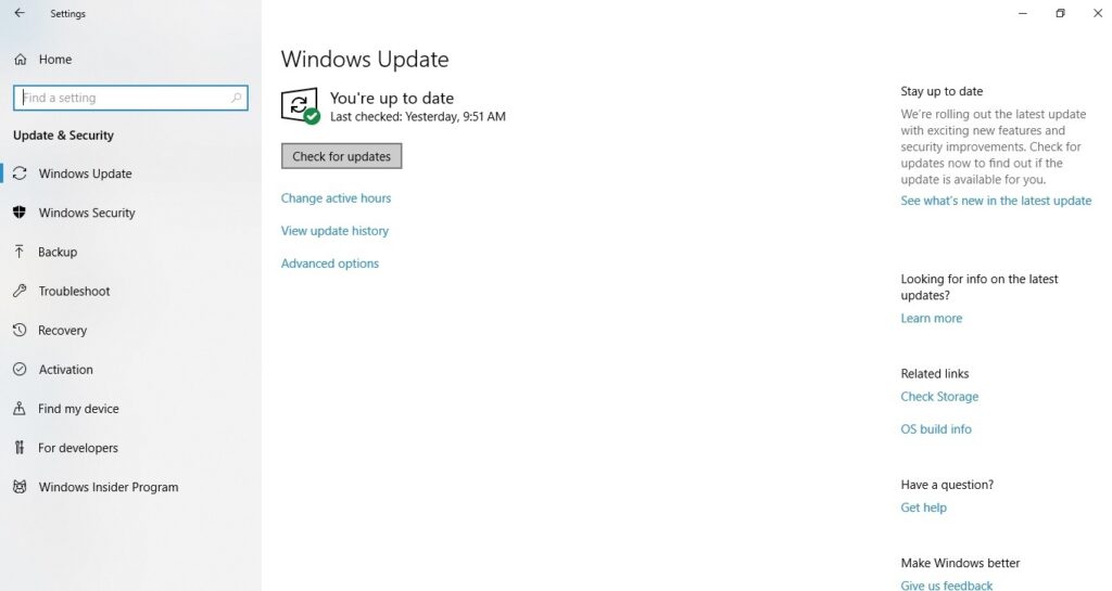 - Click Check for Updates and update if available.