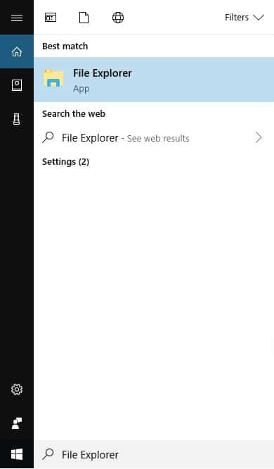- Navigate to the Windows Start menu and search for File Explorer.