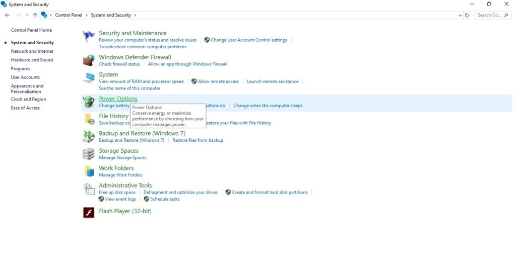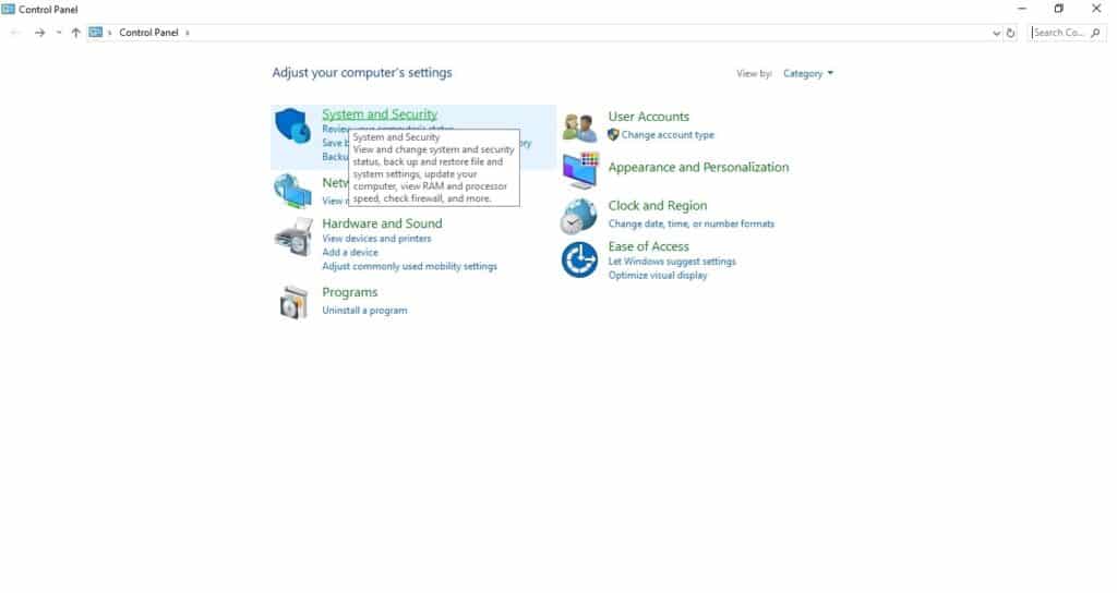 - Left-click on System and Security.