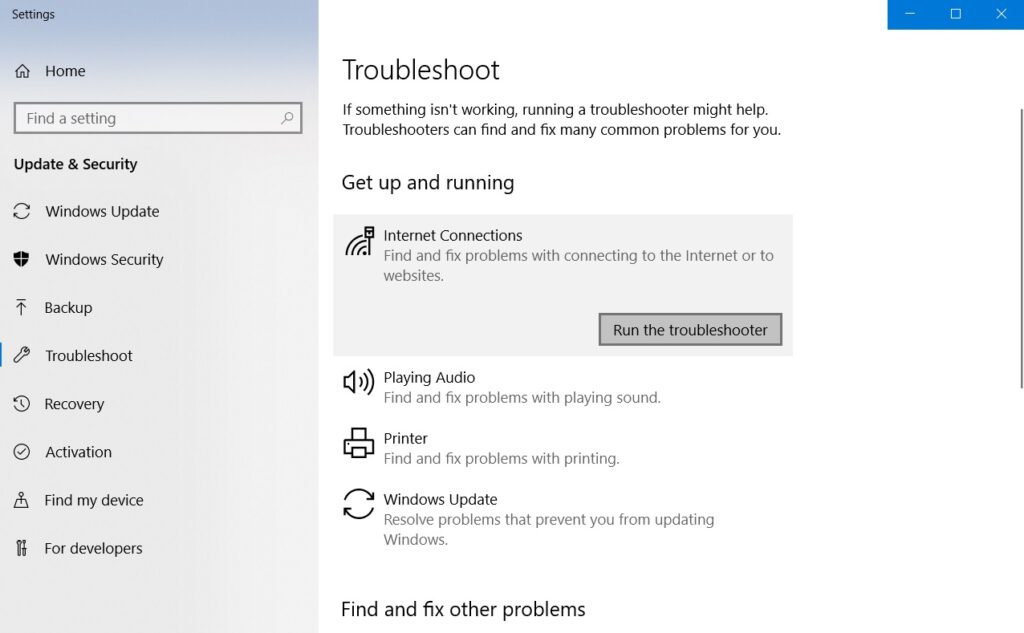 Next, click the highlighted button that says, “Run the troubleshooter.” This action will bring up a new, smaller window that will run through your Internet connection and ensure everything is moving along smoothly on that side of things. Hopefully, the results will show that nothing is wrong and your connection will return to normal, but if an issue does pop up, you will have the option to fix things from there.
