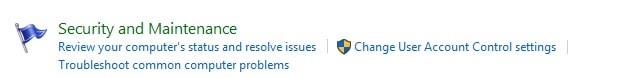 - Select Security and Maintenance
